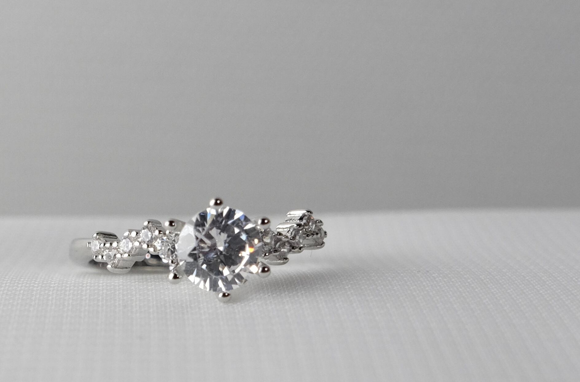 センターに配されたモアサナイトは、